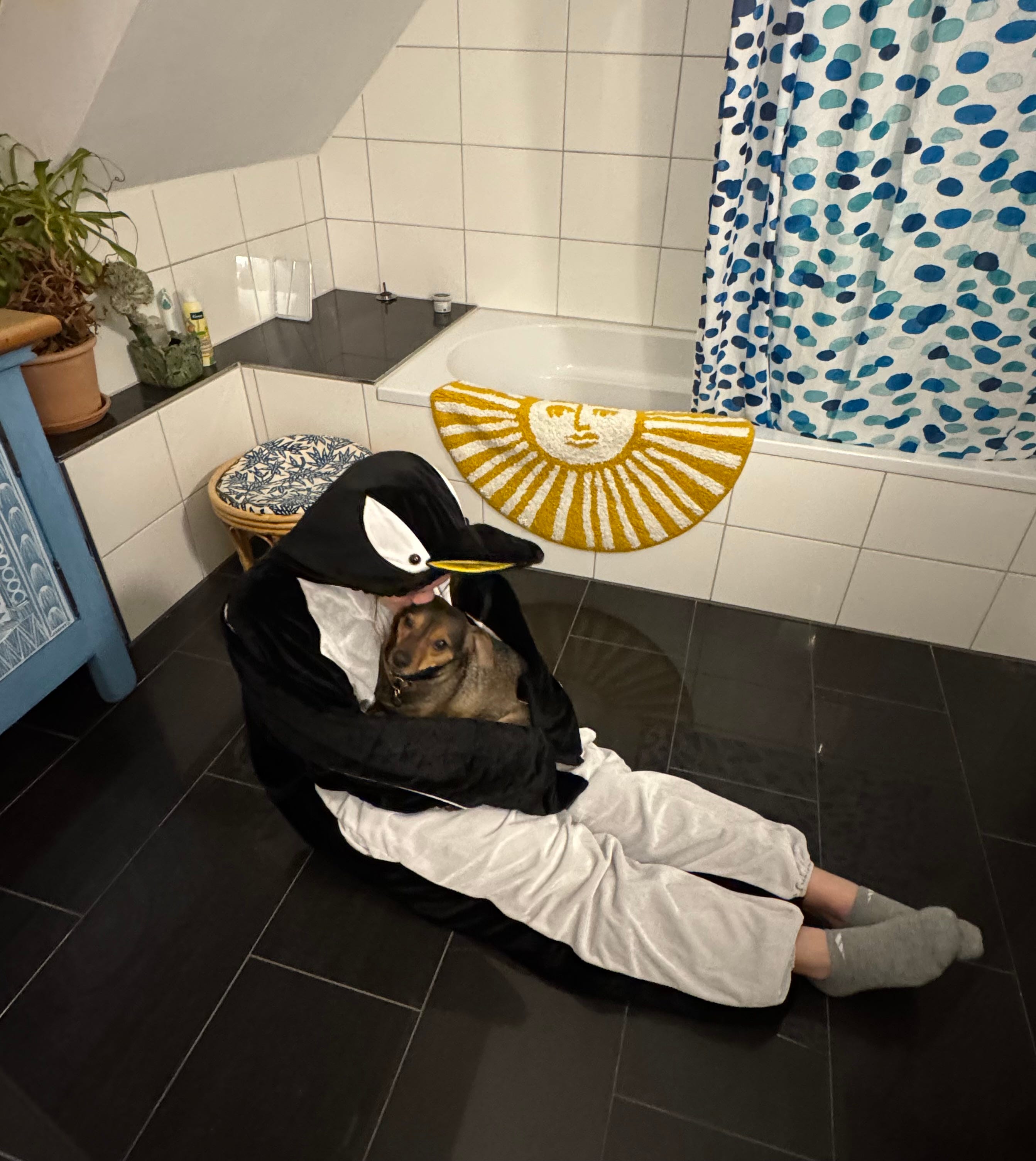 And speaking of multiple personalities, it’s Karneval season! The penguin costume comes out every year.