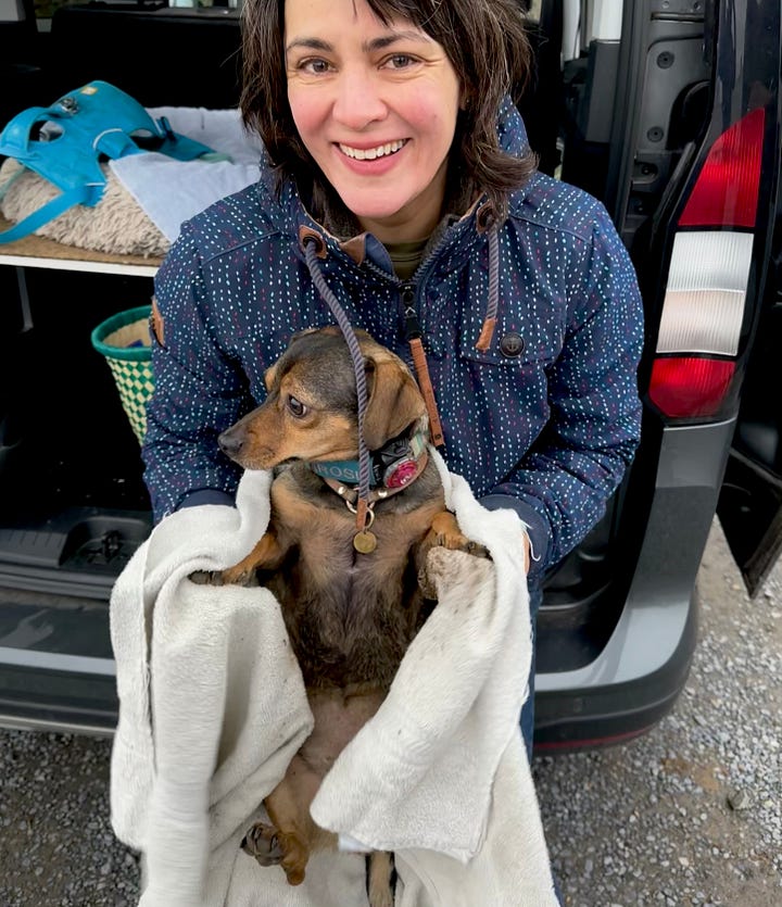 Rosie was transformed with a good scrubbing, and Raven just needed his paws cleaned since he dislikes mud (he essentially floats over it, as regal sighthounds do).